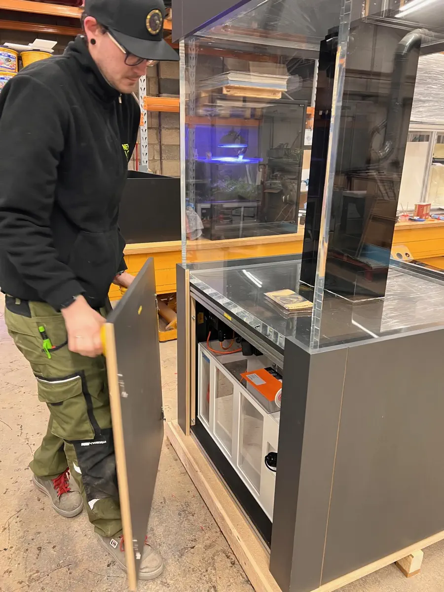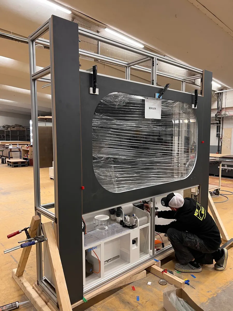 Zwei individuell angefertigte Aquarien bereichern seit 2024 die Ausstellung im Aquarium in Bergen. Ein 1m breiter und höher Würfel aus Acrylglas bietet Seepferdchen und ein 2m breiter Stretched Kreisel Quallen ein neues zu Hause. Die zugehörigen Filtertechniken und Gestelle inkl. Verkleidungselemente gehörten ebenfalls zu unserem Leistungsumfang.