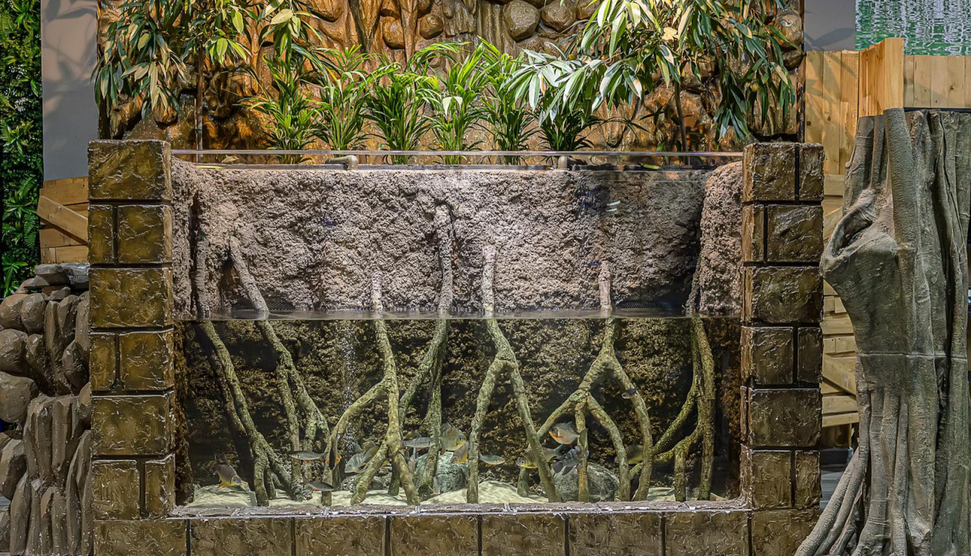 Hier durften wir für unsere Freunde und Partner www.aquamarineexotic.com an Ihrem neuen Aquaristik-Megastore im Herzen von Kuwait-Stadt mitwirken und alle Disziplinen des Aquarienbaus ausleben. Von einem ca. 400-l-Süsswasser-Zylinderaquarium, einem 2500-l-Meerwasseraquarium in Sonderform mit hochwertigsten Designermöbeln über ein stahlverstärktes GFK-Aquarium mit Frontverglasung aus einer 60-mm-Acrylglasscheibe und künstlicher Mangroven-Rückwand bis hin zu zwei 2 m hohen Wasserspielen war alles dabei.