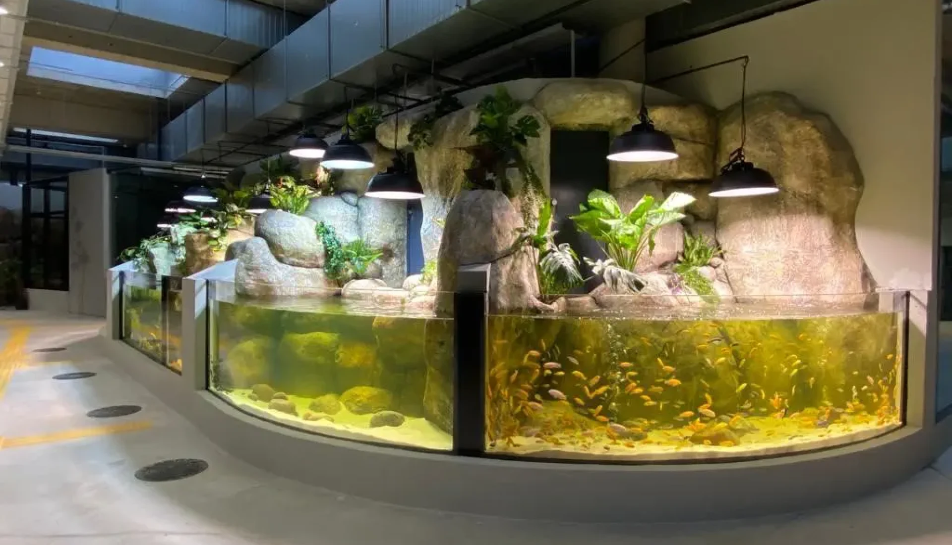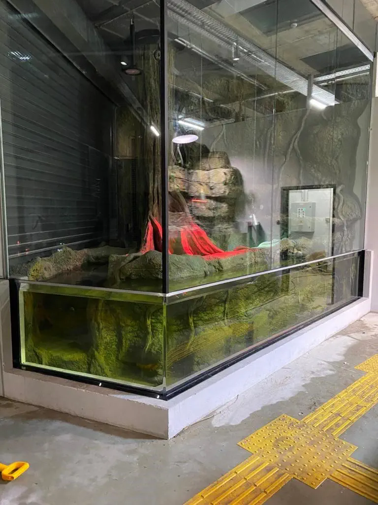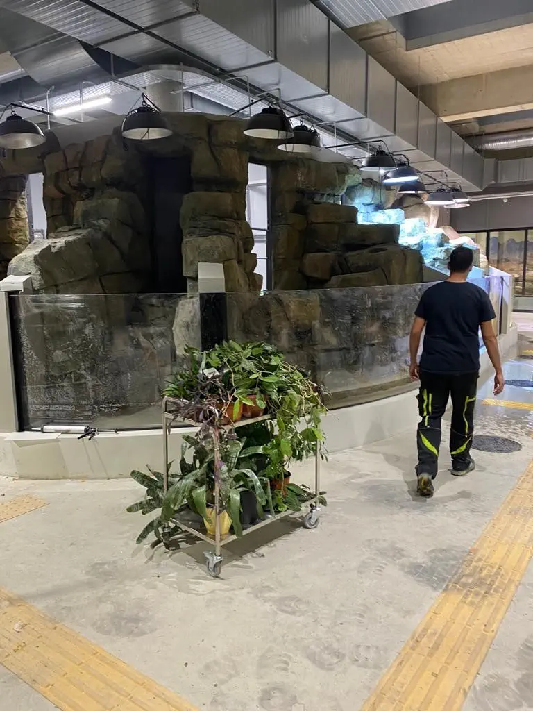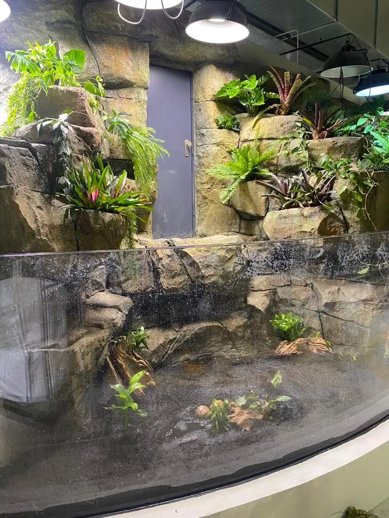 In partnership with our friends from Pangea Rocks of Denmark, we planned and realised altogether 10 aquariums and 14 terrarium for the tropical house at the zoo in Kaunas. Our services included coating the concrete tanks, installing and sealing the acrylic glass panels and constructing custom-designed terrariums. We also planned and supplied filter technology for nine of the aquariums. Pangea Rocks equipped the entire tropical hall with artificial rocks, landscaping each enclosure individually according to the respective natural habitats.