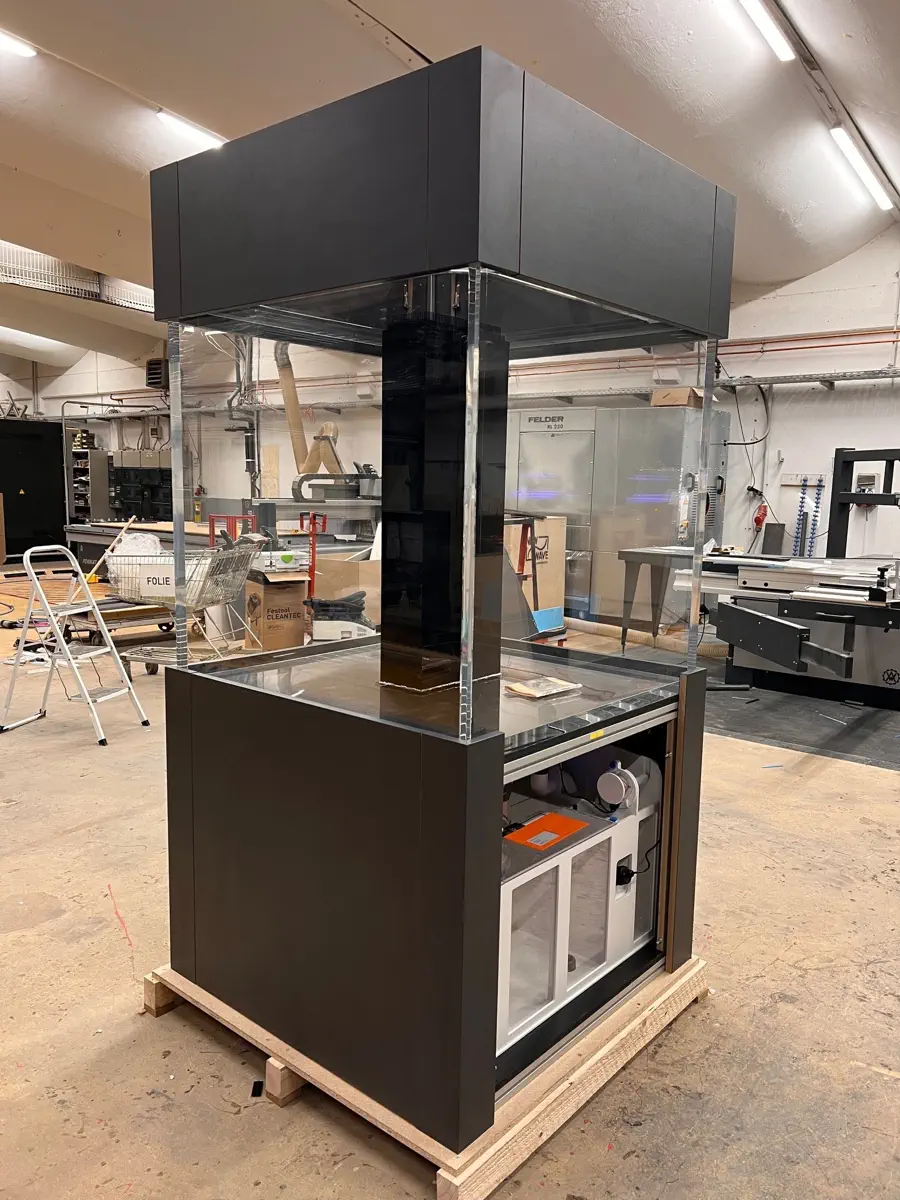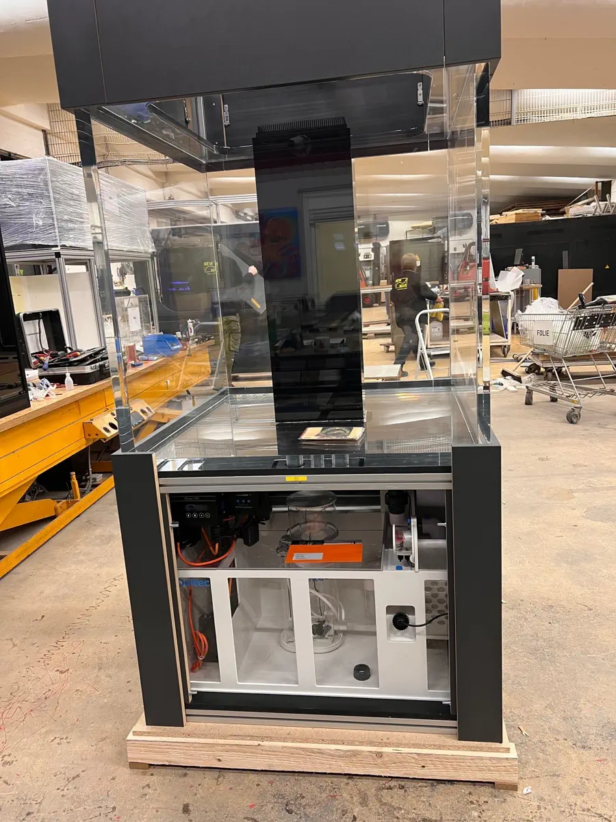 Zwei individuell angefertigte Aquarien bereichern seit 2024 die Ausstellung im Aquarium in Bergen. Ein 1m breiter und höher Würfel aus Acrylglas bietet Seepferdchen und ein 2m breiter Stretched Kreisel Quallen ein neues zu Hause. Die zugehörigen Filtertechniken und Gestelle inkl. Verkleidungselemente gehörten ebenfalls zu unserem Leistungsumfang.