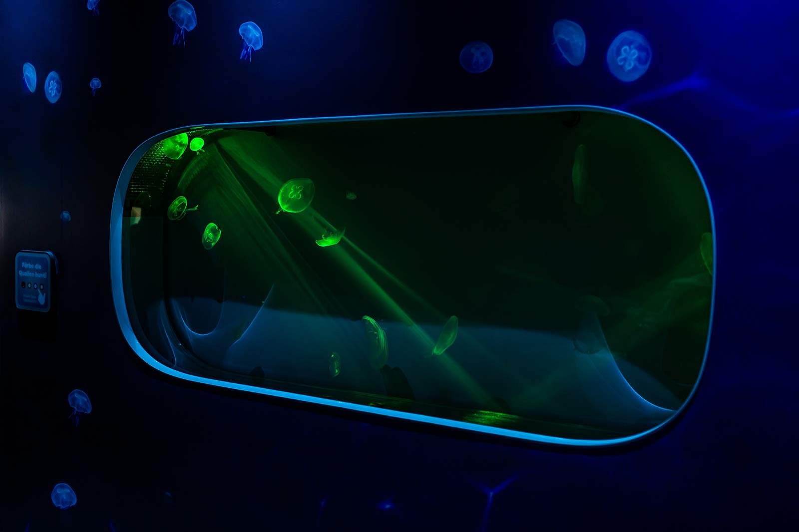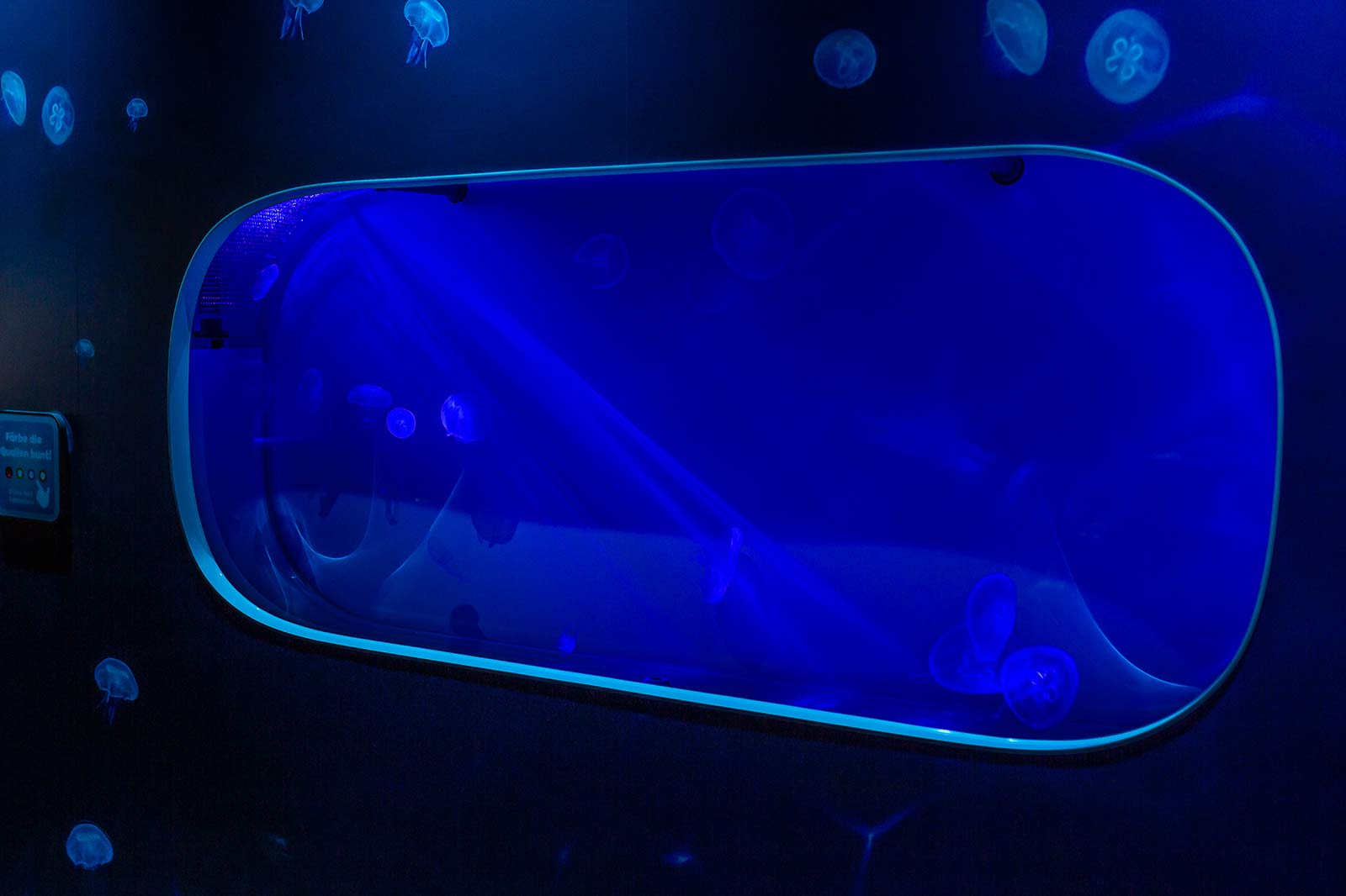 Dieses Kaltwasserhabitat mit einer Wassertemperatur zwischen ca. 15 – 20°C wurde speziell für die Haltung von Quallen konzipiert. Das maßangefertigte Aquarium mit aktiven und einstellbaren Strömungshilfen verfügt über eine spezielle Beckengeometrie zur Unterstützung eines natürlichen Schwimm- und Schwebeverhaltens und bietet optimale Haltungsbedingung für viele Quallenarten.