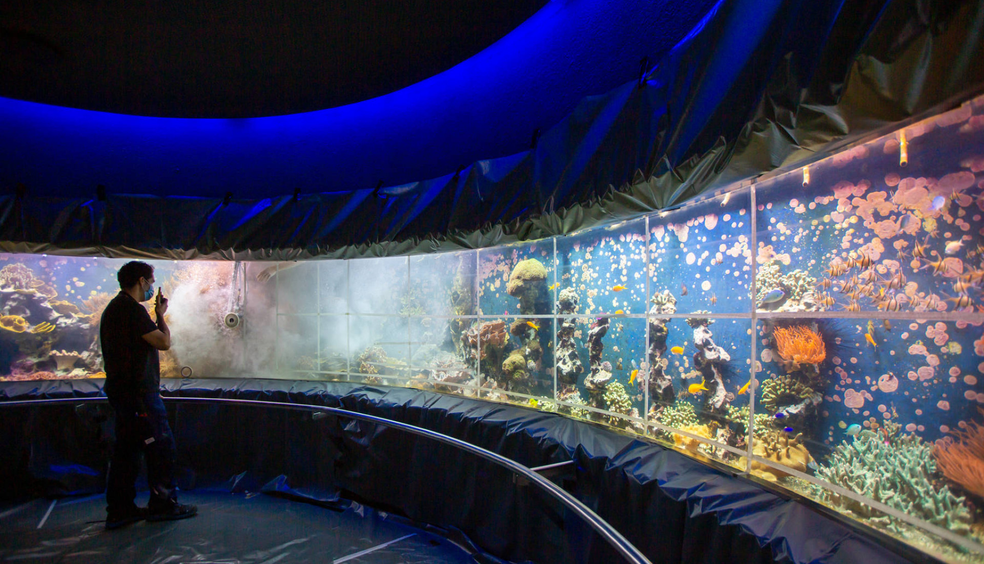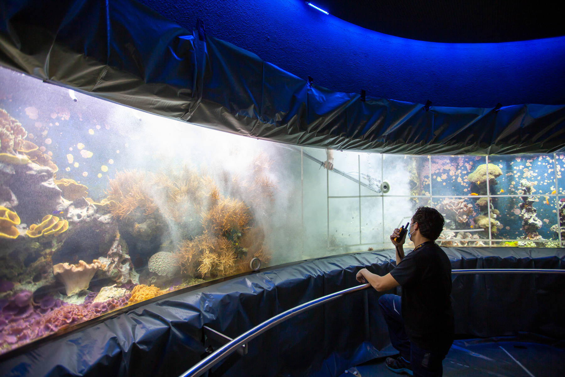 Wir bauen nicht nur Aquarien, wir pflegen und sanieren sie ebenso – auch Unterwasser! Der Aquazoo in Düsseldorf hat den zweiten Corona-Lockdown genutzt, um solche Sanierungs- und Reparaturarbeiten von uns durchführen zu lassen, was normalerweise nur außerhalb der Besuchszeiten oder durch temporäre Schließung einer Ausstellung möglich wäre