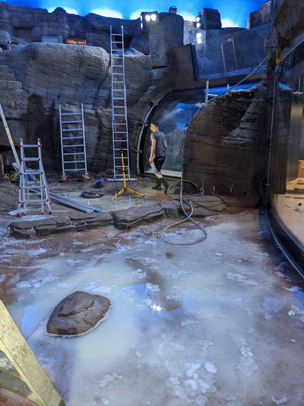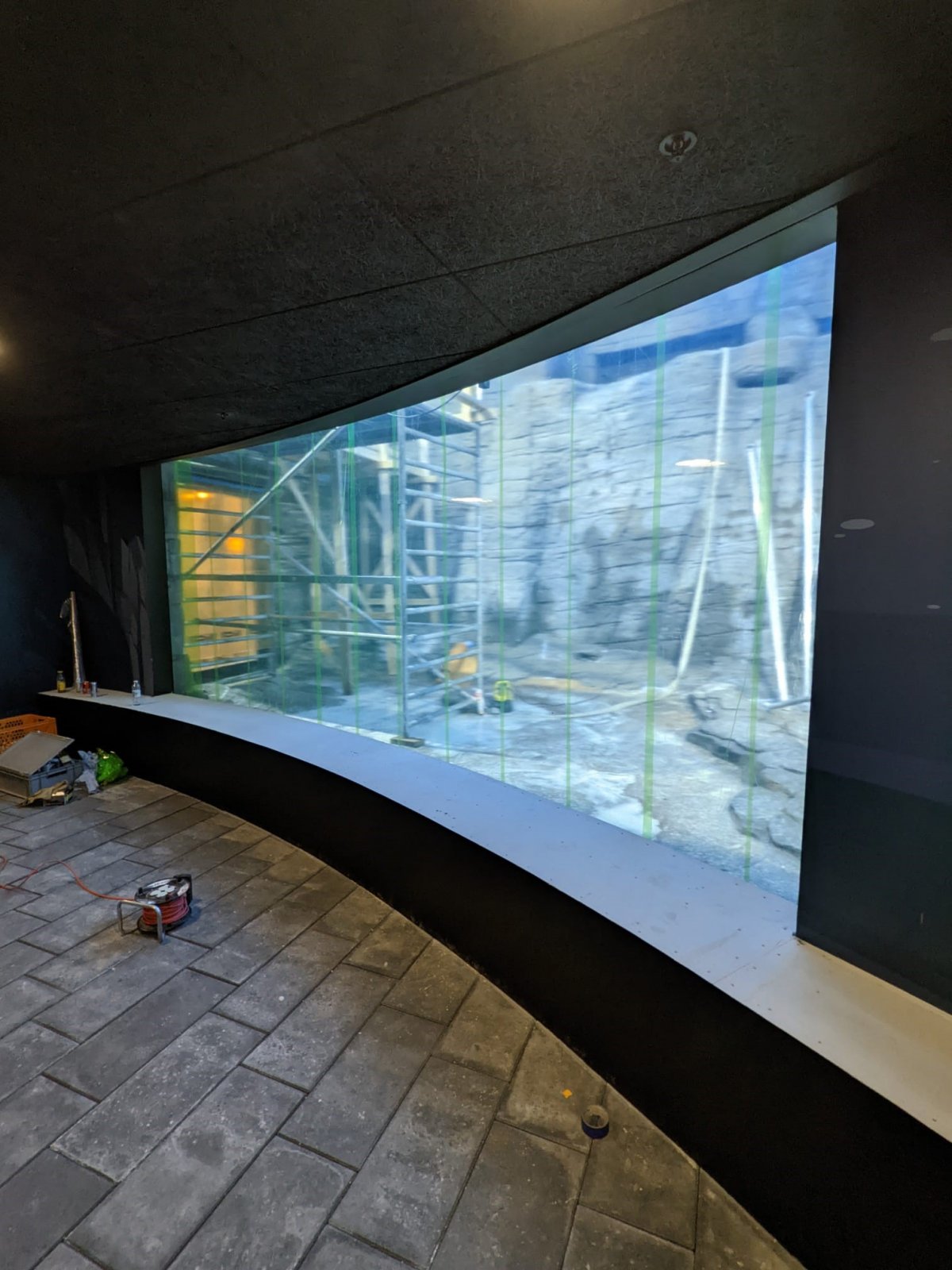 Für das 2022 eröffnete neue Pinguingehege im Kattegatcenter wurden knapp 7 Tonnen Acrylglas verbaut und mit über einer Länge insgesamt 80m Silikonfuge versiegelt. Die größte Scheibe ist 7m lang und fast 3m hoch.